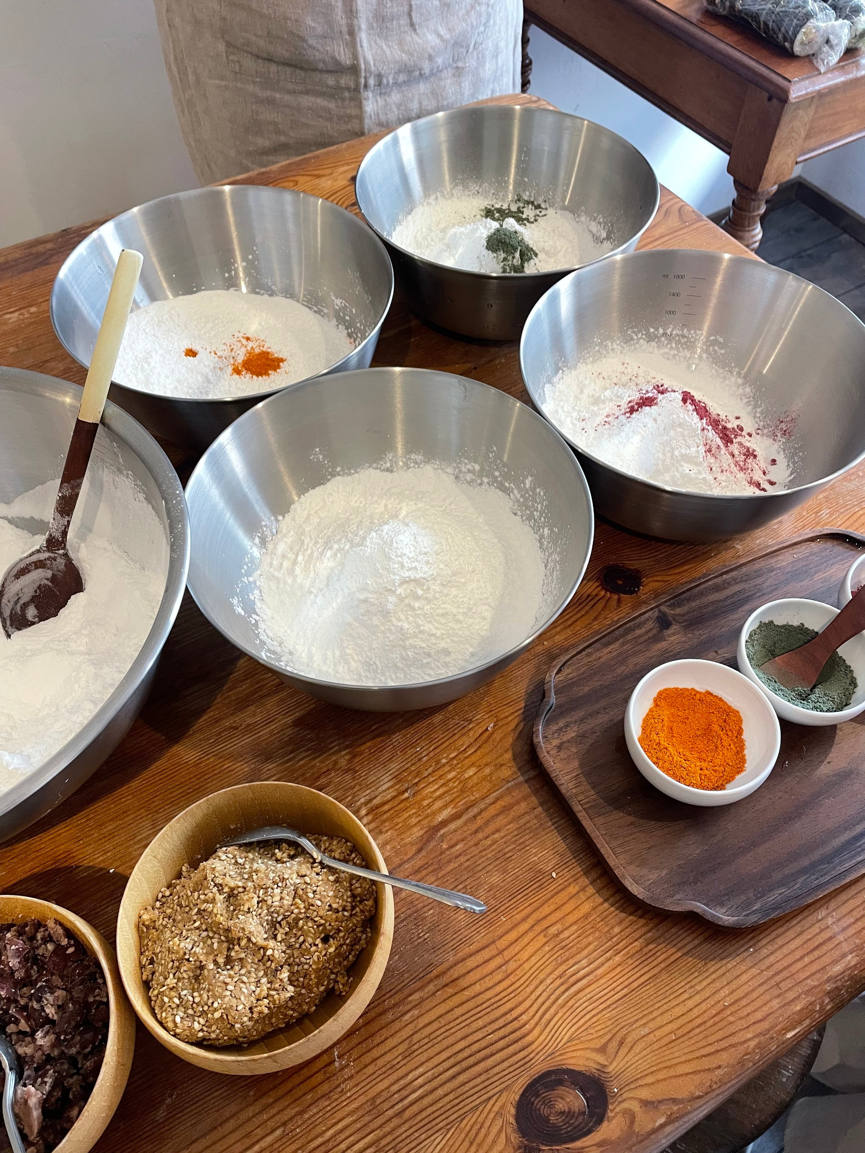 天然薬草粉で白、黄、緑、赤の柔らかいソンピョンが作れます。